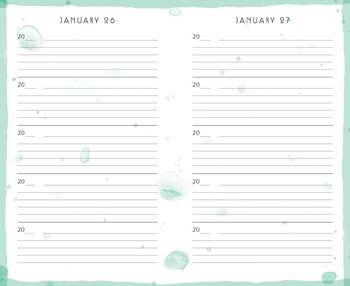 This page layout allows you to compare today's notes with those of years past on each date going back five years. Discover what you did one, two, three, or four years ago on birthdays, New Year's Eve, or anniversaries as you fill these pages.